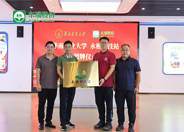 7月16日,華南農(nóng)業(yè)大學(xué)獸醫(yī)學(xué)院專家代表王衡老師到東瑞股份舉行“永根科技站”授牌儀式,東瑞股份副總裁劉水平、證券投資部總經(jīng)理謝志銘出席授牌儀式。
